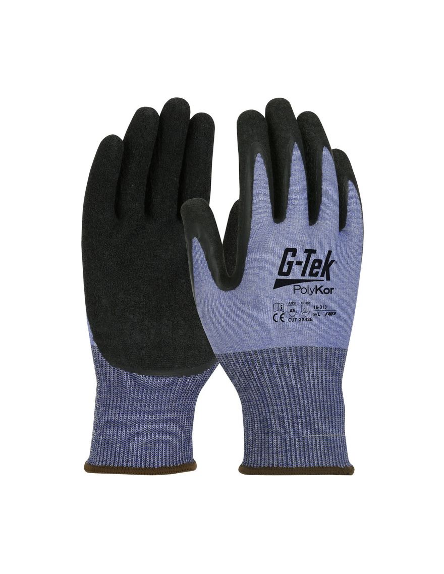Gants anti-coupure G-TEK PolyKor® avec technologie X7™16-313 de la marque PIP, avec enduction en latex crêpé sur la paume et bout des doigts, jauge 18. Le support Polykor est léger et fournit une excellente dextérité et sensibilité tactile, et une résistance aux coupures.